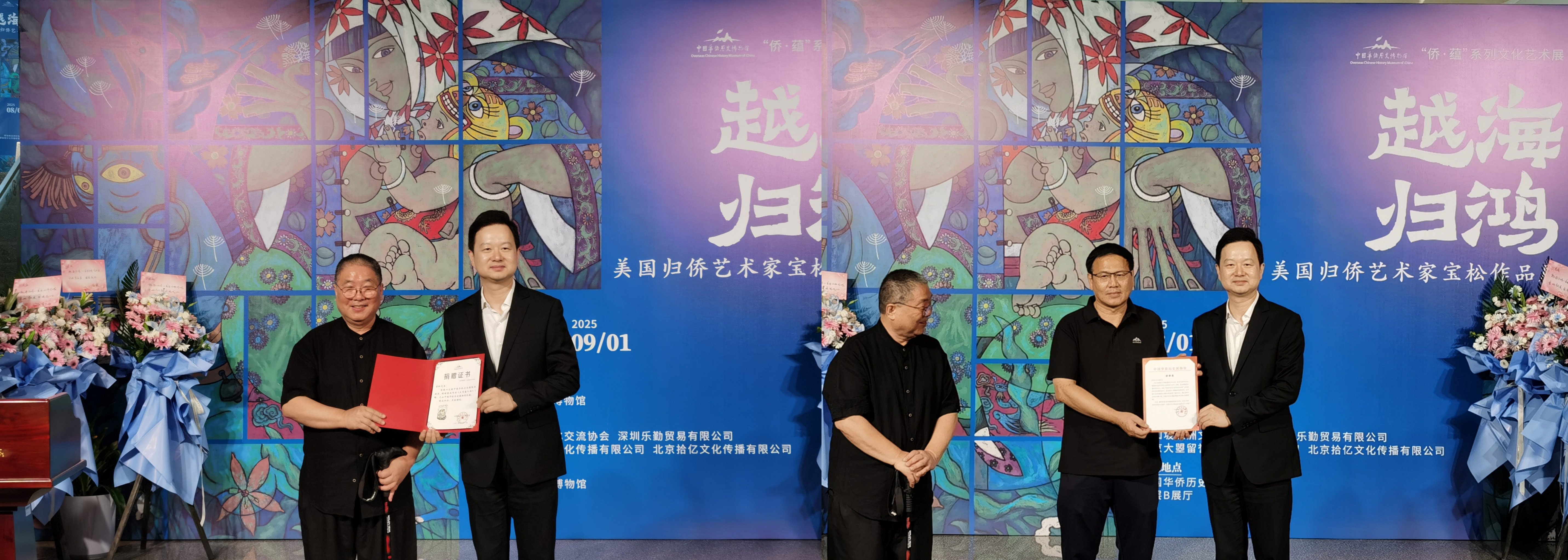 在开幕式上,宝松向侨博捐赠他在2002年创作的大写意人物画,宁一代表侨博接受捐赠并颁发证书。