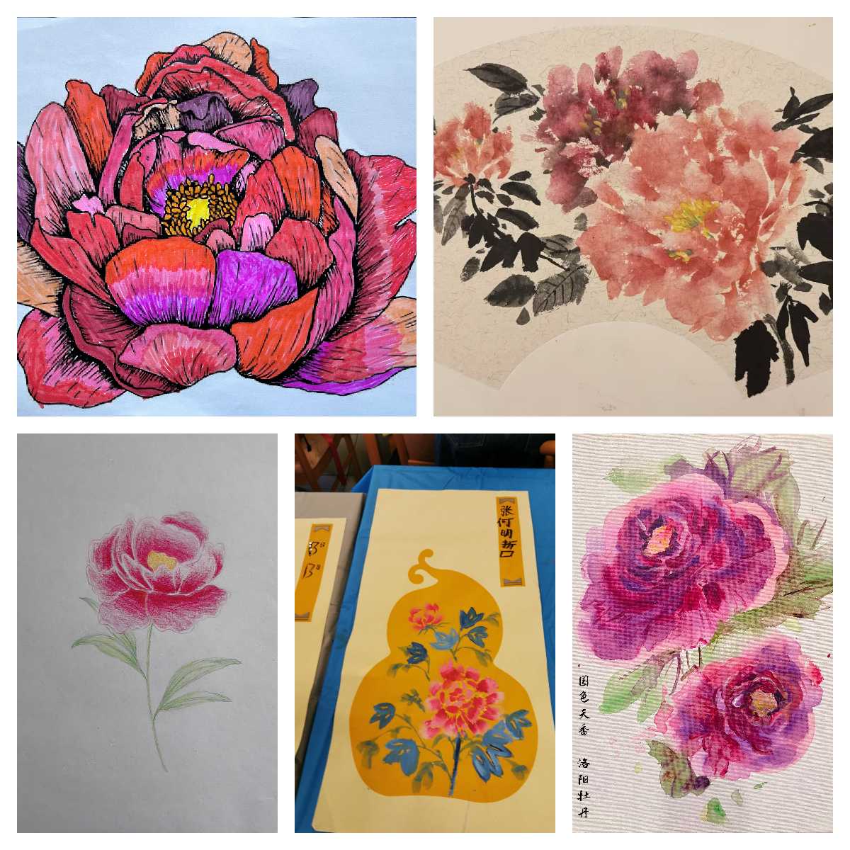 洛阳牡丹甲天下,营员们妙笔生花,牡丹之色、之态、之神与不同画风相结合,无论是姹紫嫣红的万千花色,丰腴典雅的花容,还是蕴含其中的富贵天香,都被呈现得栩栩如生,纸上留芳华。