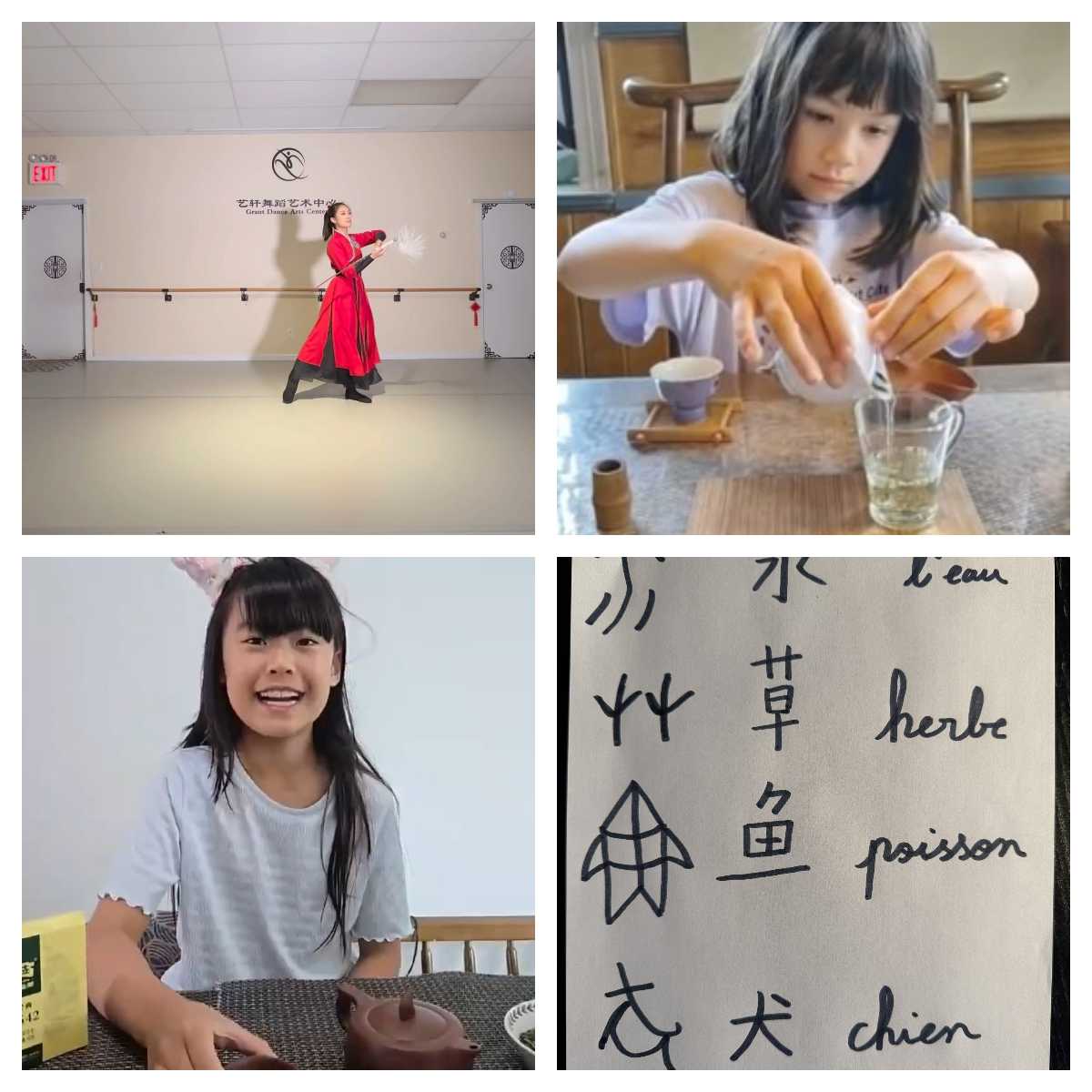 还有营员通过短视频展示学习的茶艺、剑舞和甲骨文书写。