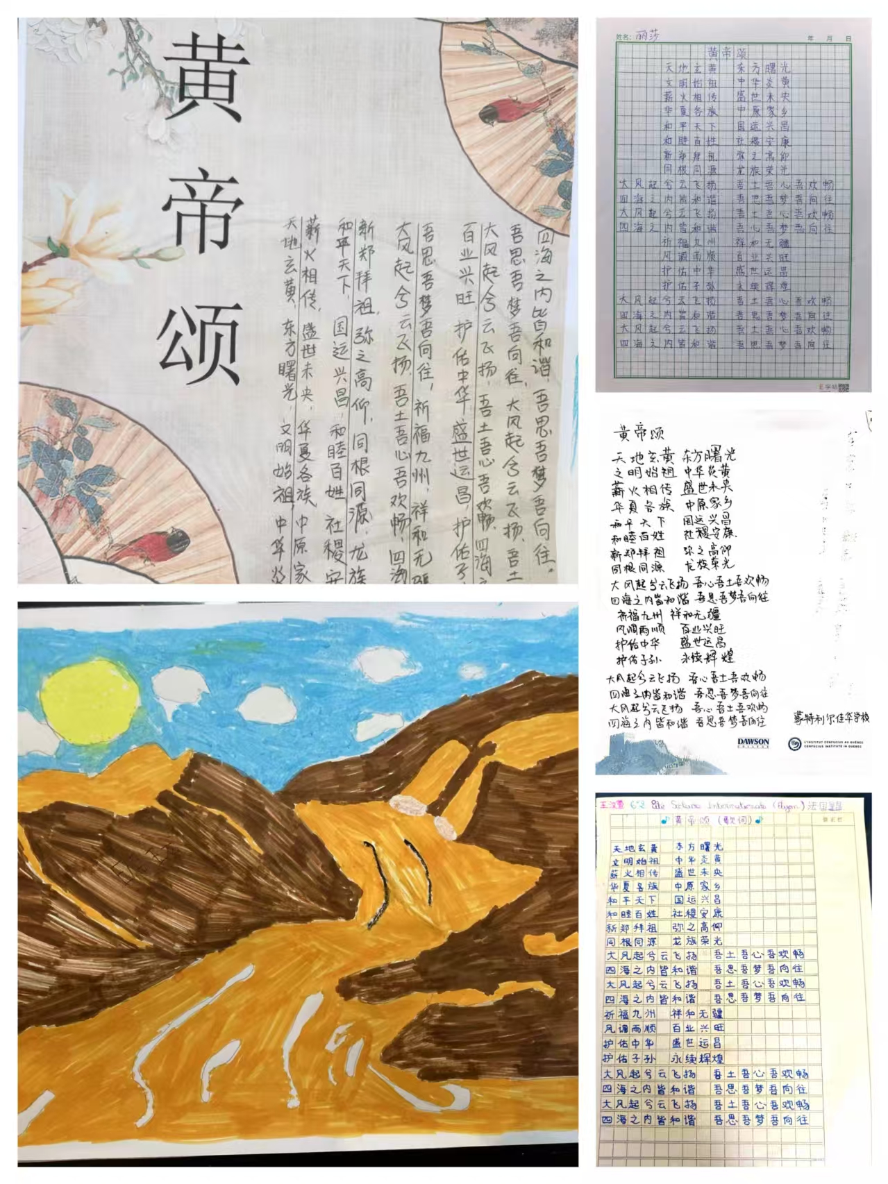 几千年来,黄河不仅哺育了无数的中华儿女,还滋养了数不清的文艺作品。那些由黄河奔涌而出的动人音符,记载着中华民族悠久的文明历史和厚重的文化内涵。在第四课上,郑州大学音乐学院教师张建勋从讲述黄河文化开始,通过讲述歌曲《黄帝颂》的背景、讲解歌词释义、逐句教唱,带领营员们学习这首影响深远的黄帝故里拜祖大典颂歌,让海外华裔青少年通过音乐触摸黄帝文化印记,增进“根”的文化认同、强化“亲”的情感共鸣。小营员们通过抄写《黄帝颂》歌词、录制演唱视频,将对黄帝文化的感悟融入歌声,以青春之声传递对根亲文化的理解与热爱。