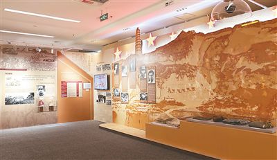 “争取民族解放”“团结御辱保卫祖国”“保卫世界和平”……走进“万里同心”特展大厅,悬挂在展厅天花板上的抗战横幅将观众带回那段烽火岁月。