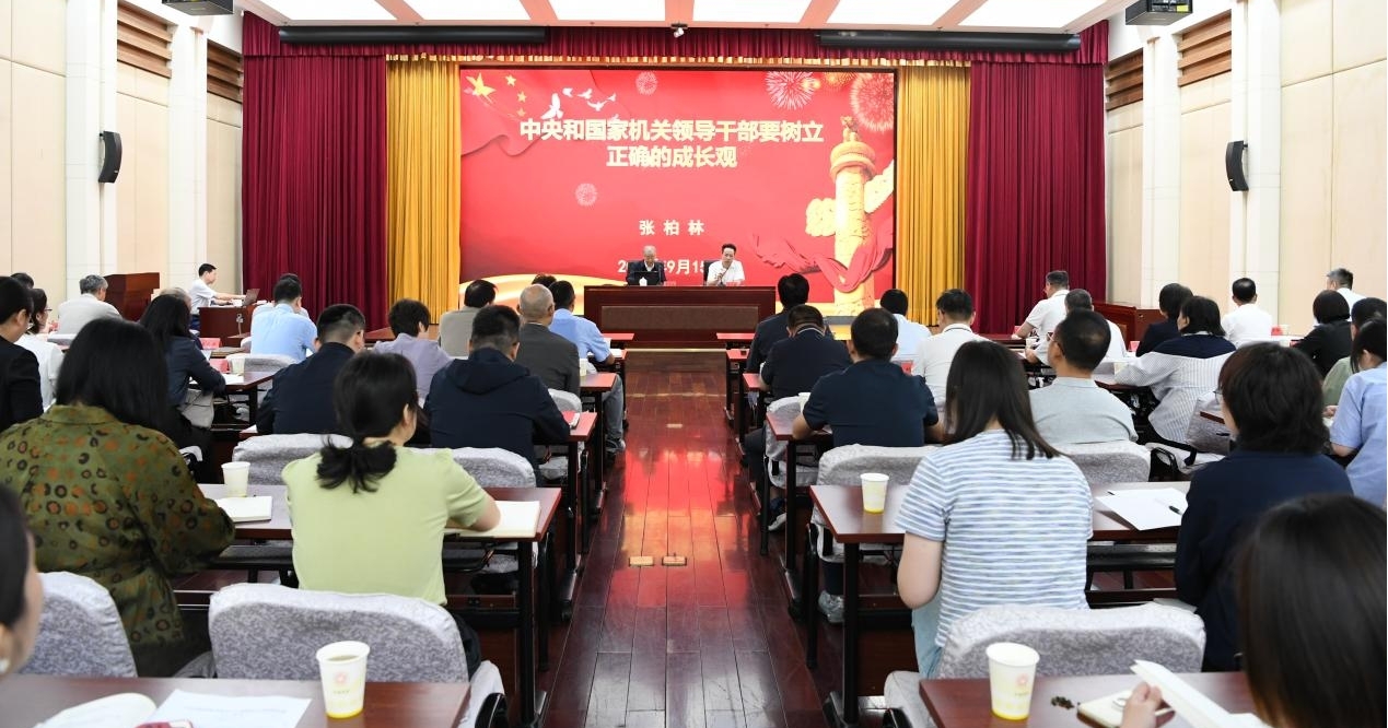 9月15日,党组理论学习中心组(扩大)开展集体学习暨“党建引领·侨心向党”思政大讲堂第三次专家辅导讲座。中央组织部原常务副部长,原人事部部长、党组书记张柏林以“中央和国家机关领导干部要树立正确的成长观”为题进行授课。副主席程红,党组成员、副主席候选人高峰出席讲座。党组成员、副主席,直属机关党委书记连小敏主持讲座并讲话。