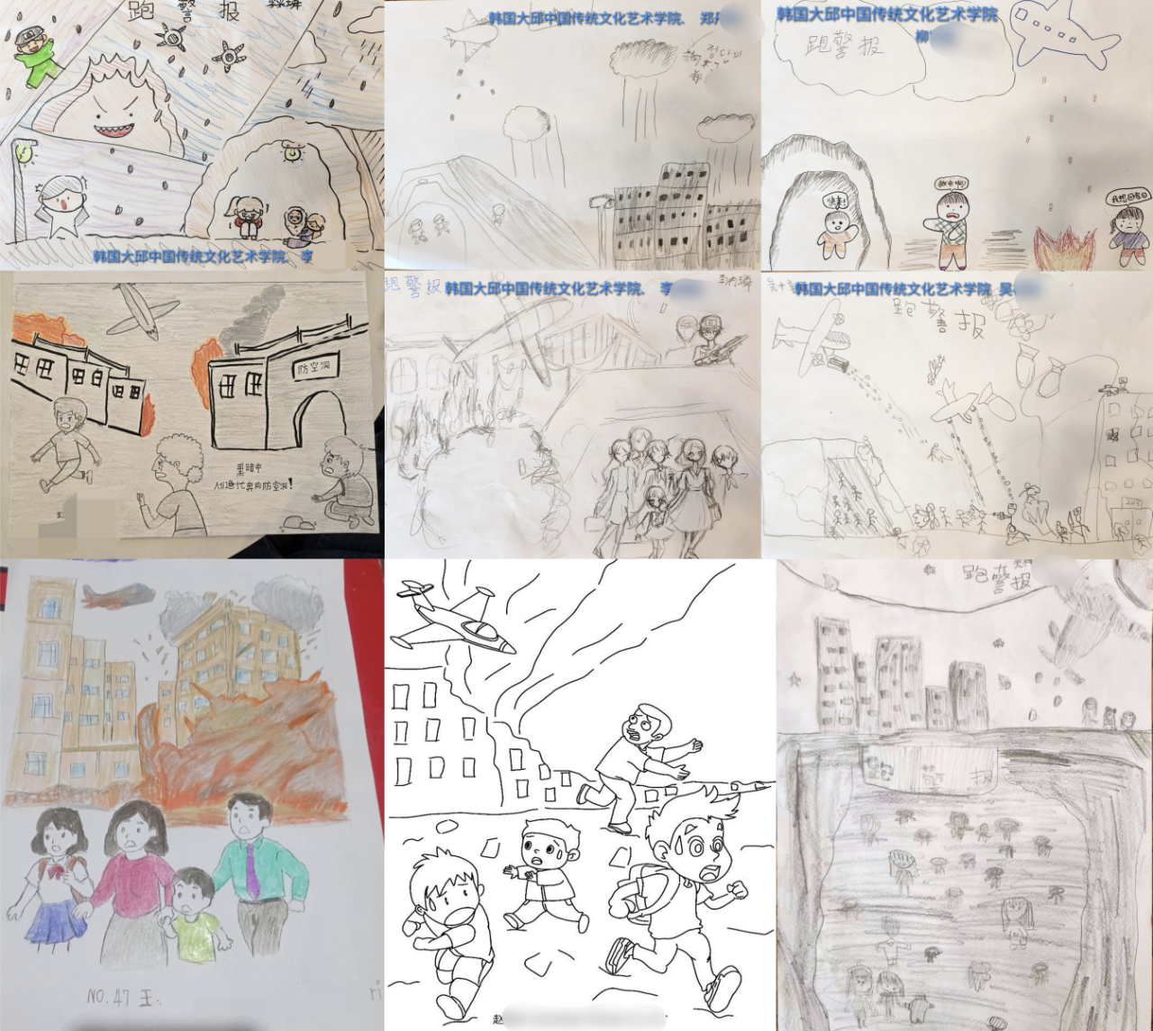课程内容深化了营员们对抗日战争的理解和认知。大家以绘画为媒介,跨越时空,切身感受了历史场景中尤为震撼的一页——在日军飞机频繁轰炸下,重庆人民“跑警报”的紧急时刻。