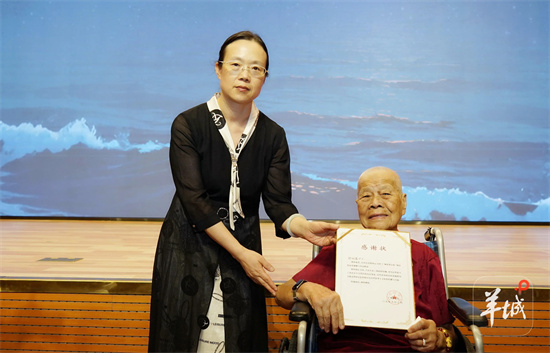 百岁归侨、抗战老兵钟炳聪作为受访者代表来到活动现场