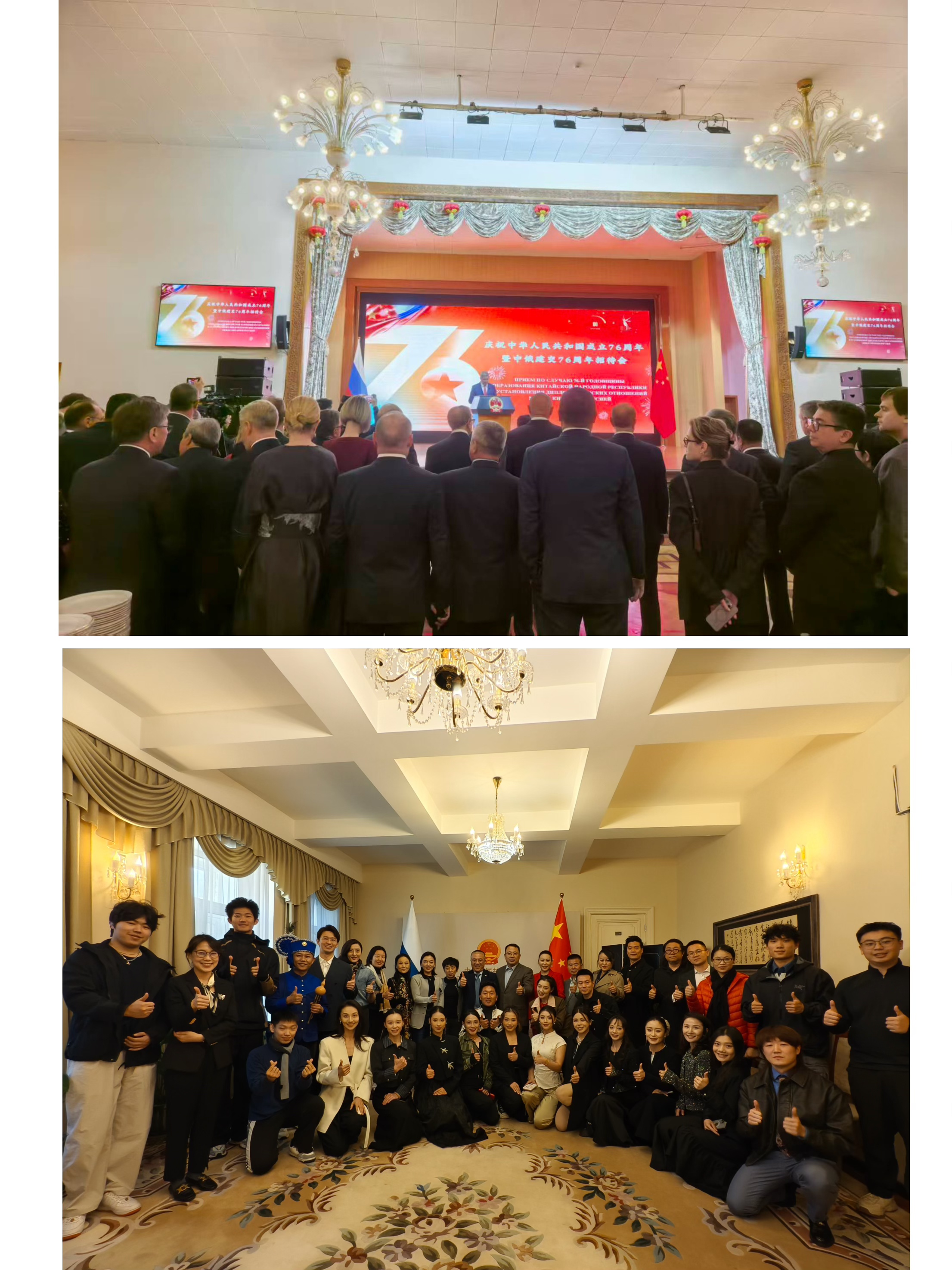 演出期间,“亲情中华”艺术团还参加了中国驻俄罗斯大使馆庆祝中华人民共和国成立76周年暨中俄建交76周年招待会,赴中国驻圣彼得堡总领馆开展联欢活动。艺术团以精湛的艺术表演,为参加招待会的中俄嘉宾和总领馆馆员带来兼具民族风与国际范的艺术精品,让俄罗斯友人更直观地感受中华文化的深厚底蕴,也让海外侨胞在熟悉的旋律与演绎中,重温家国情怀,感受“亲情”与“温暖”。