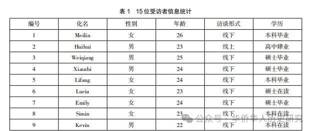 本研究采用深度访谈、个案研究和民族志方法,实施时间为2020—2024年。研究流程包括三个阶段:一是通过深度访谈,与1.5代华人移民展开深入交流,并在访谈后保持联系;二是通过个案研究,参与受访者的日常生活,近距离观察和分析其身份认同的流动性与文化适应;三是利用民族志的写作形式,以深描(thick description)的方式展现1.5代移民的身份流变路径与机制。