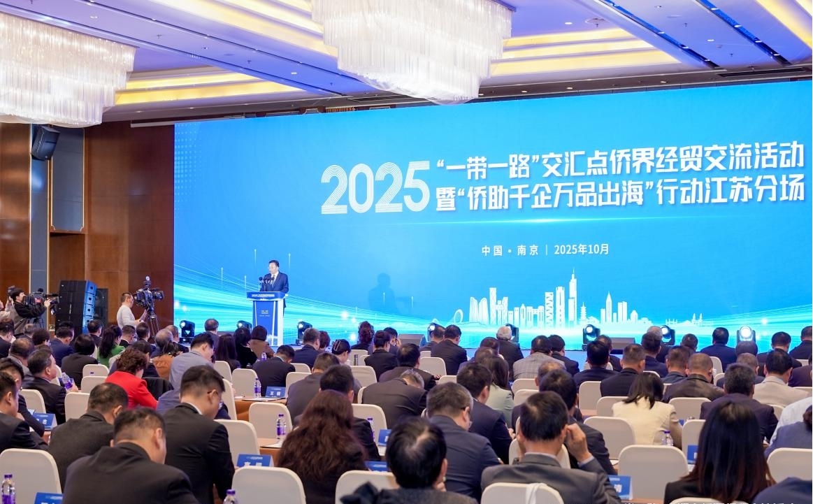10月30日,2025“一带一路”交汇点侨界经贸交流暨“侨助千企万品出海”行动江苏分场活动在南京举办。活动紧扣深入学习贯彻党的二十届四中全会精神,紧紧围绕江苏深度融入高质量共建“一带一路”,着力推动海内外市场资源互动,发挥广大侨胞在推动江苏高质量发展、高水平对外开放中的独特作用。副主席程红,江苏省委常委、省委统战部部长胡广杰出席开幕式并讲话,来自五大洲42个国家和地区的侨商侨领和侨界社团组织代表,法顾委海外委员,上海、浙江、安徽、广东、云南、广西、四川、重庆、新疆等省级侨联,江苏省有关部门和单位负责人共280余人参加活动。