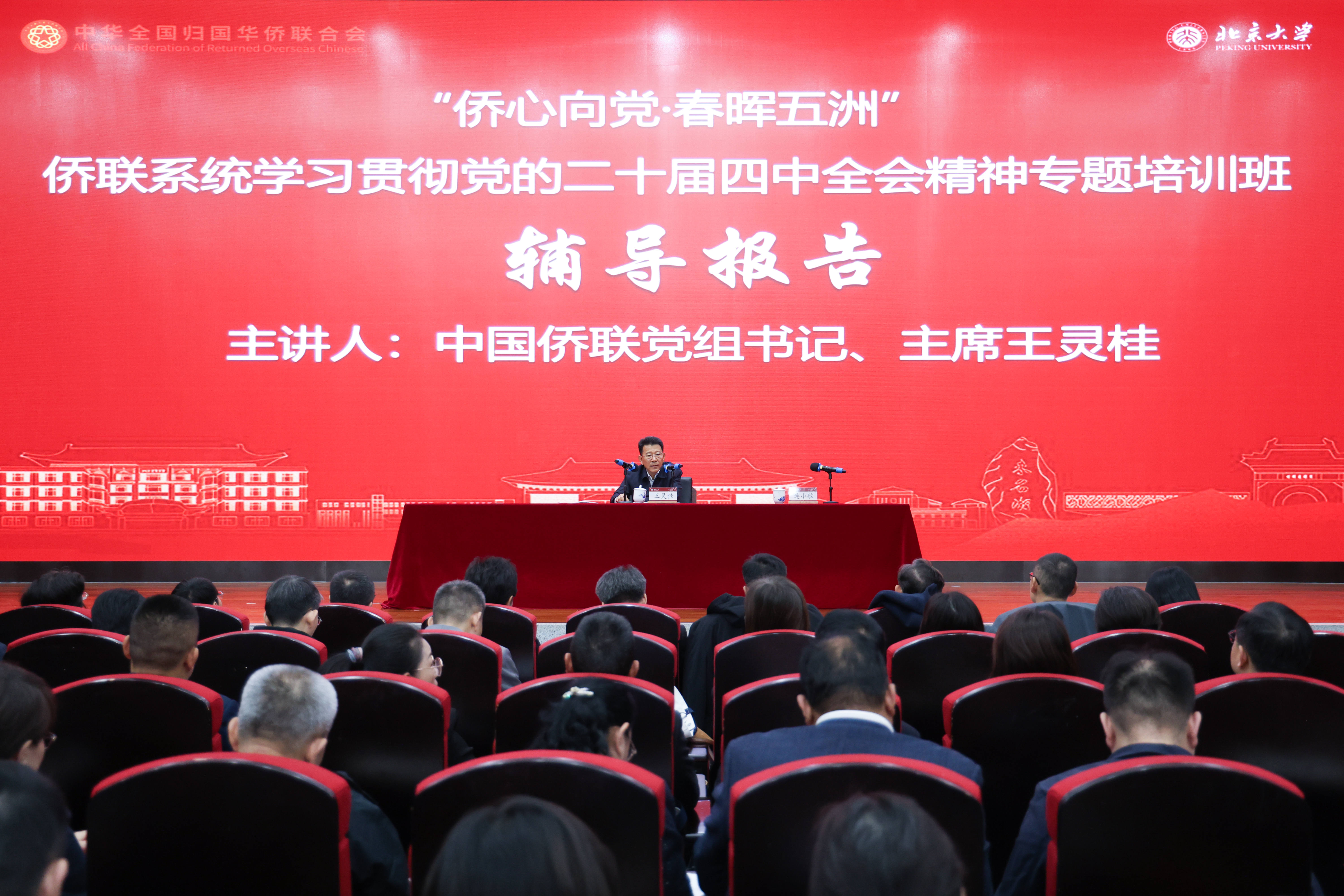 11月11日上午,“侨心向党·春晖五洲”侨联系统学习贯彻党的二十届四中全会精神专题培训班在北京大学开班。党组书记、主席王灵桂出席开班式并作动员讲话和辅导报告。党组成员、副主席,直属机关党委书记连小敏主持开班式。北京大学党委副书记、统战部部长姜国华致辞。
