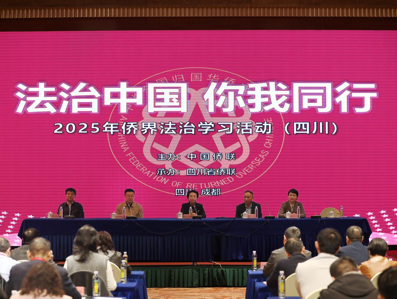 11月11日至14日,由主办,四川省侨联承办的“法治中国 你我同行”——2025年侨界法治学习活动(四川)在四川省成都市举行。副主席程红出席活动并讲话,四川省人大常委会副主任祝春秀致辞。来自四川、重庆、湖北、陕西、甘肃的侨界群众代表、侨商代表、法顾委委员、侨联干部、侨界普法工作者160余人参加学习活动。